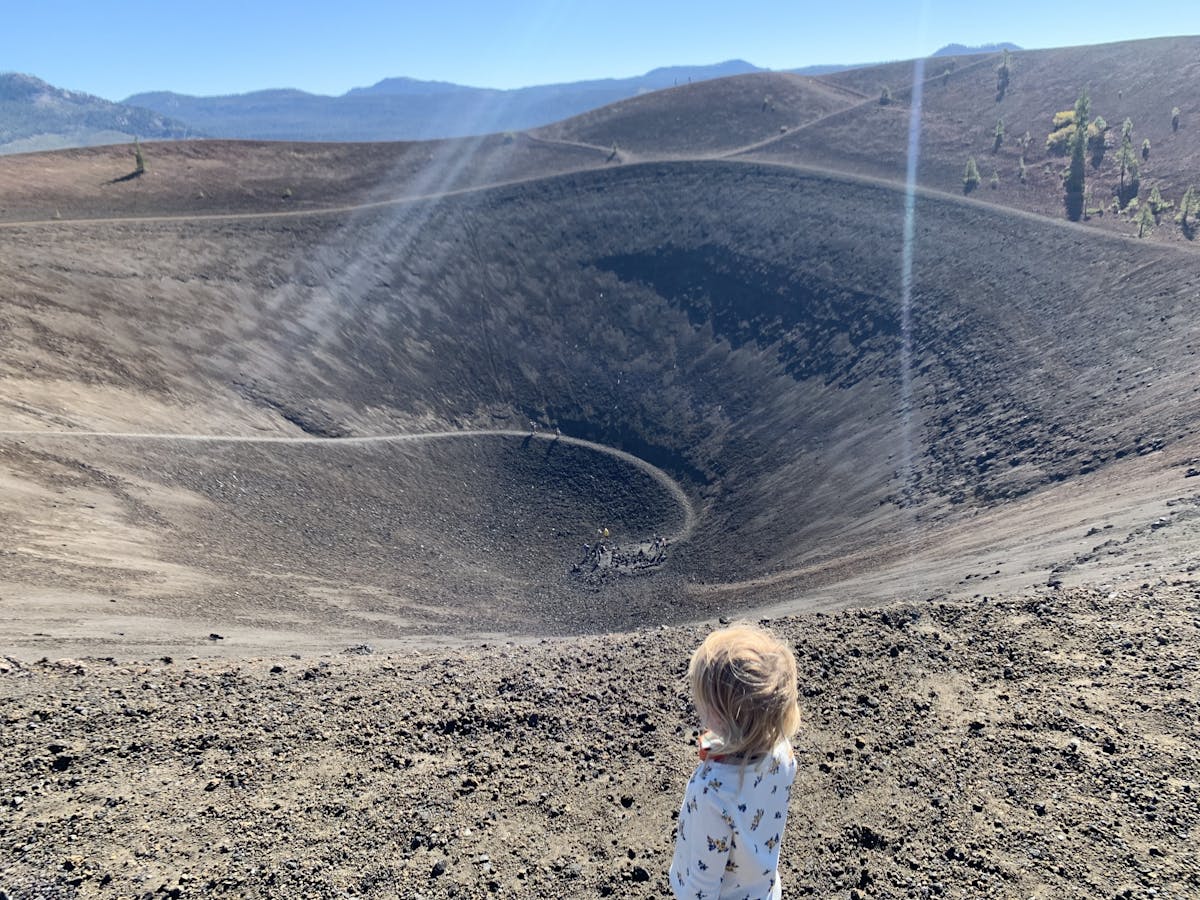 We took on a more ambitious 4 to 5 mile trek to the Cinder Cone, a volcano you can hike right up to the top of. We heroically climbed it and took in the incredible view.