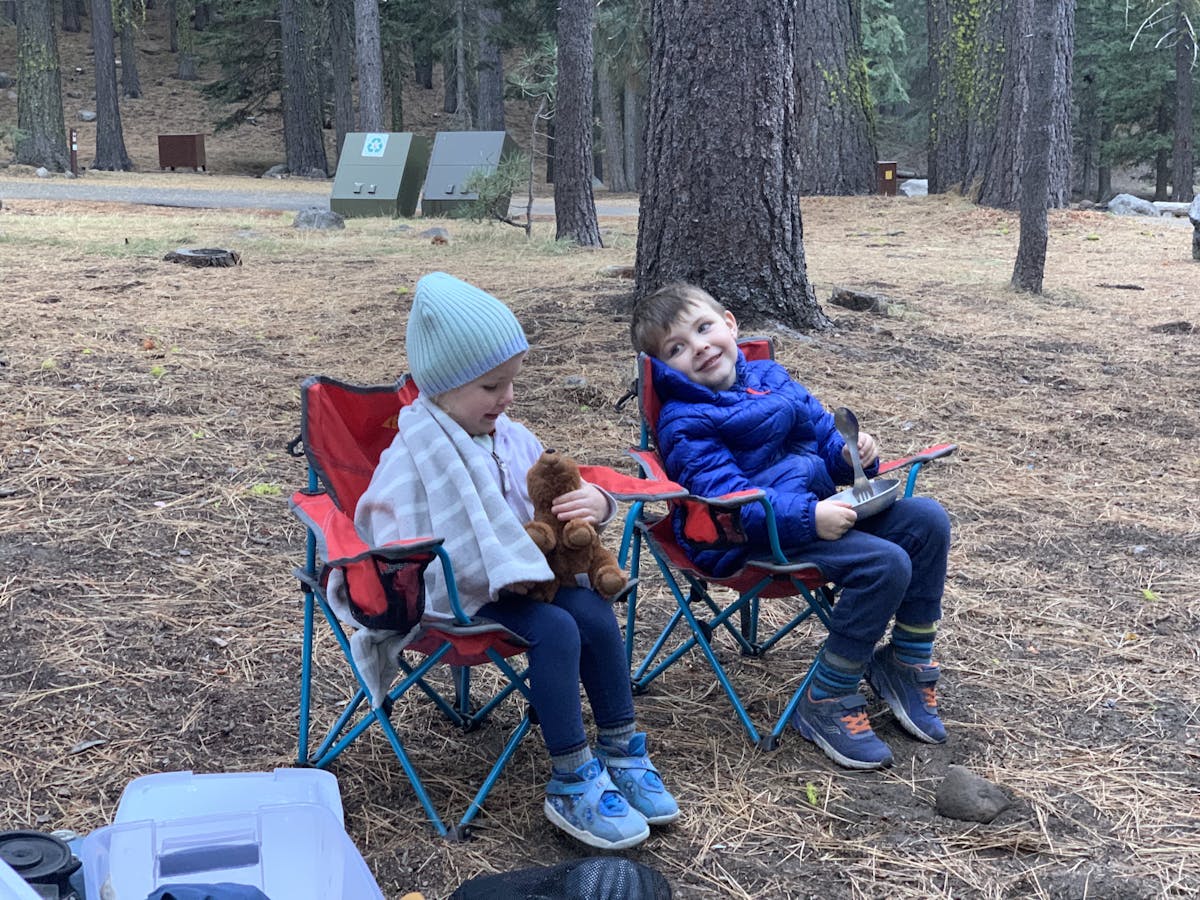 The kids settled right in to campground life. Their faces came alive as they oriented themselves with their new, temporary home. They loved having their own kid-sized chairs, and finding sticks to play with.