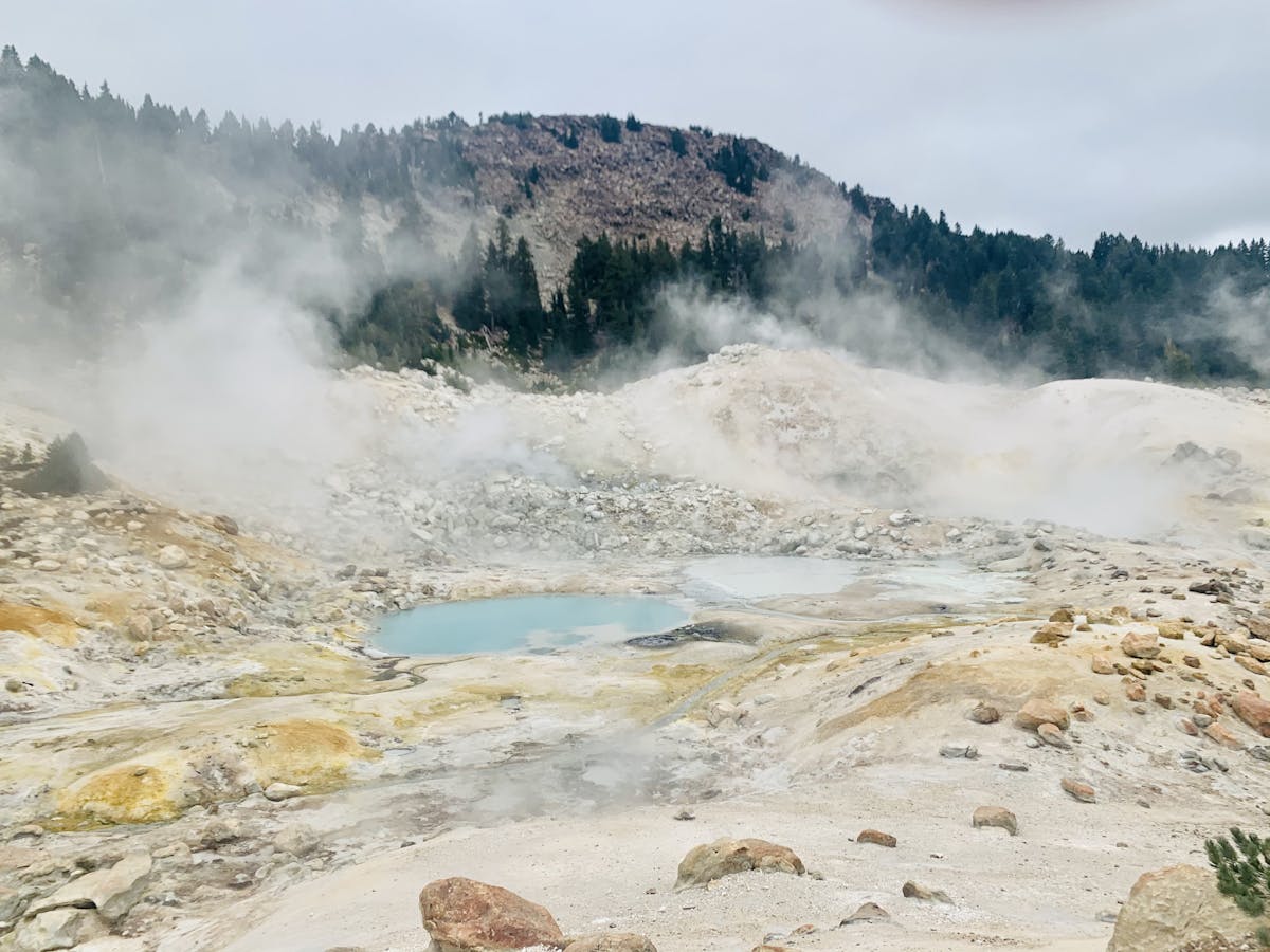 Our next hike was a good 3 mile there-and-back out to some steam vents in an area called Bumpass Hell. It smelled strong of sulfur and was loud with the sound of steam.